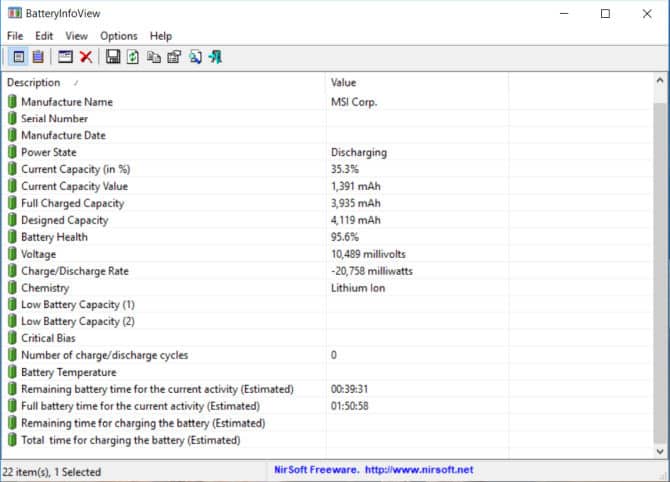 Το BatteryInfoView είναι μια δωρεάν εφαρμογή που είναι γεμάτη με πληροφορίες σχετικά με την μπαταρία του φορητού σας υπολογιστή. Το εργαλείο έχει δύο κύρια συστατικά.