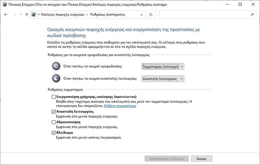 1. Απενεργοποιήστε τη γρήγορη εκκίνηση