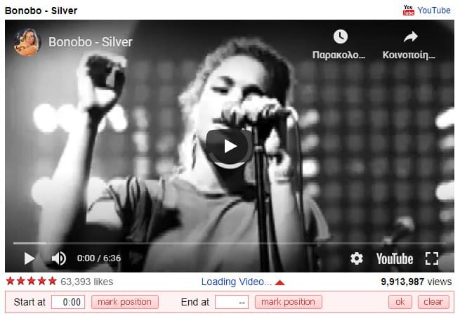 Θα ανοίξει η διεύθυνση youtuberepeater.com που θα παίζει το βίντεό σας επαναλαμβανόμενα επί άπειρο. Χρησιμοποιώντας τις επιλογές που υπάρχουν ακριβώς κάτω από το βίντεο, μπορείτε να αλλάξετε τους χρόνους έναρξης ή λήξης του βίντεο.