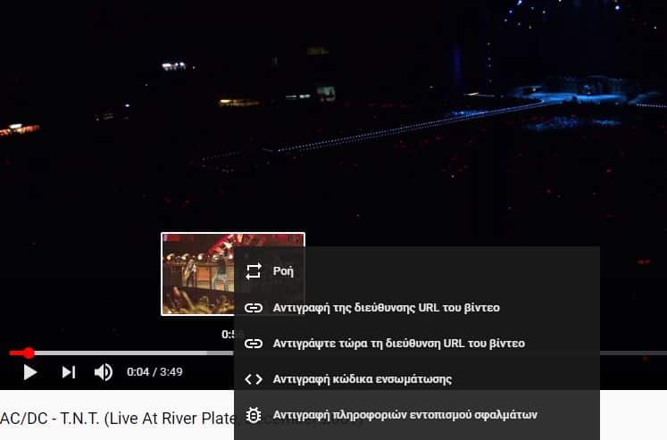 Εάν δεν θέλετε να χρησιμοποιήσετε τη μη αυτόματη μέθοδο, τότε κάντε το εξής κόλπο: θέστε σε παύση το βίντεο τη στιγμή που θέλετε να το μοιραστείτε και, στη συνέχεια, κάντε δεξί κλικ επάνω του και επιλέξτε το “Αντιγραφή τώρα την διεύθυνση URL του βίντεο”.