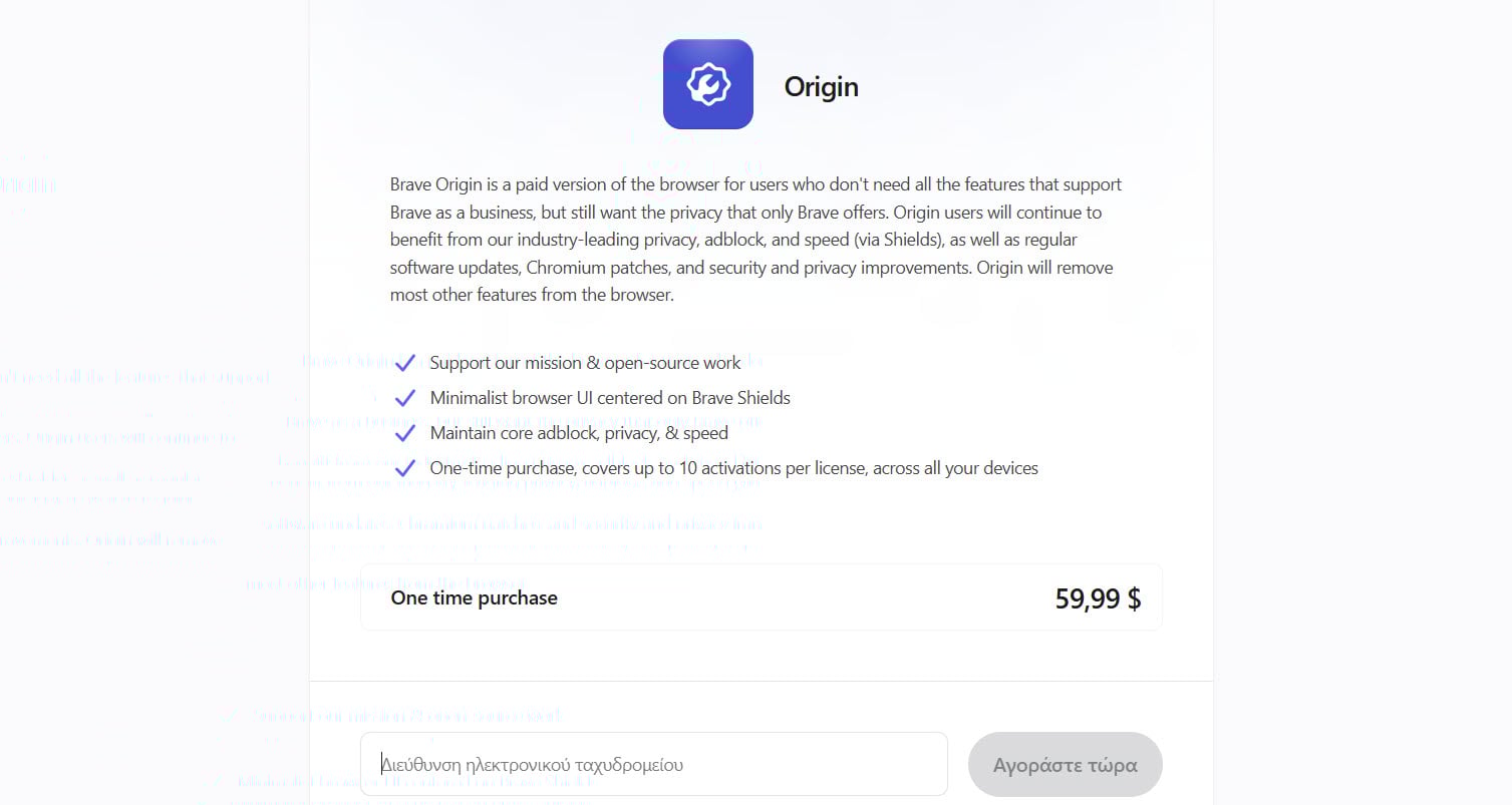 Το πρόγραμμα περιήγησης Brave «παρουσίασε το Brave Origin, μια απλοποιημένη έκδοση του προγράμματος περιήγησής του που αφαιρεί τις ενσωματωμένες λειτουργίες δημιουργίας εσόδων όπως οι Ανταμοιβές και άλλα πρόσθετα που συνδέονται με το επιχειρηματικό του μοντέλο.