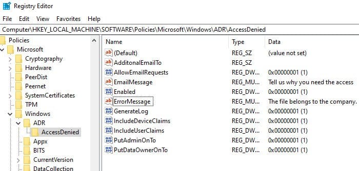 Υπολογιστής\HKEY_LOCAL_MACHINE\SOFTWARE\Policies\Microsoft\Windows\ADR\AccessDenied