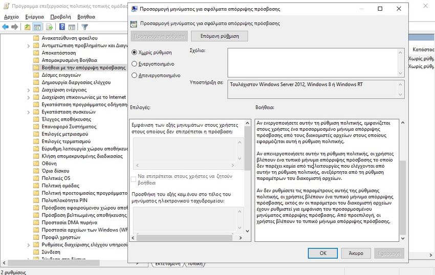 Προσαρμογή μηνύματος για άρνηση πρόσβασης μέσω Πολιτική ομάδας