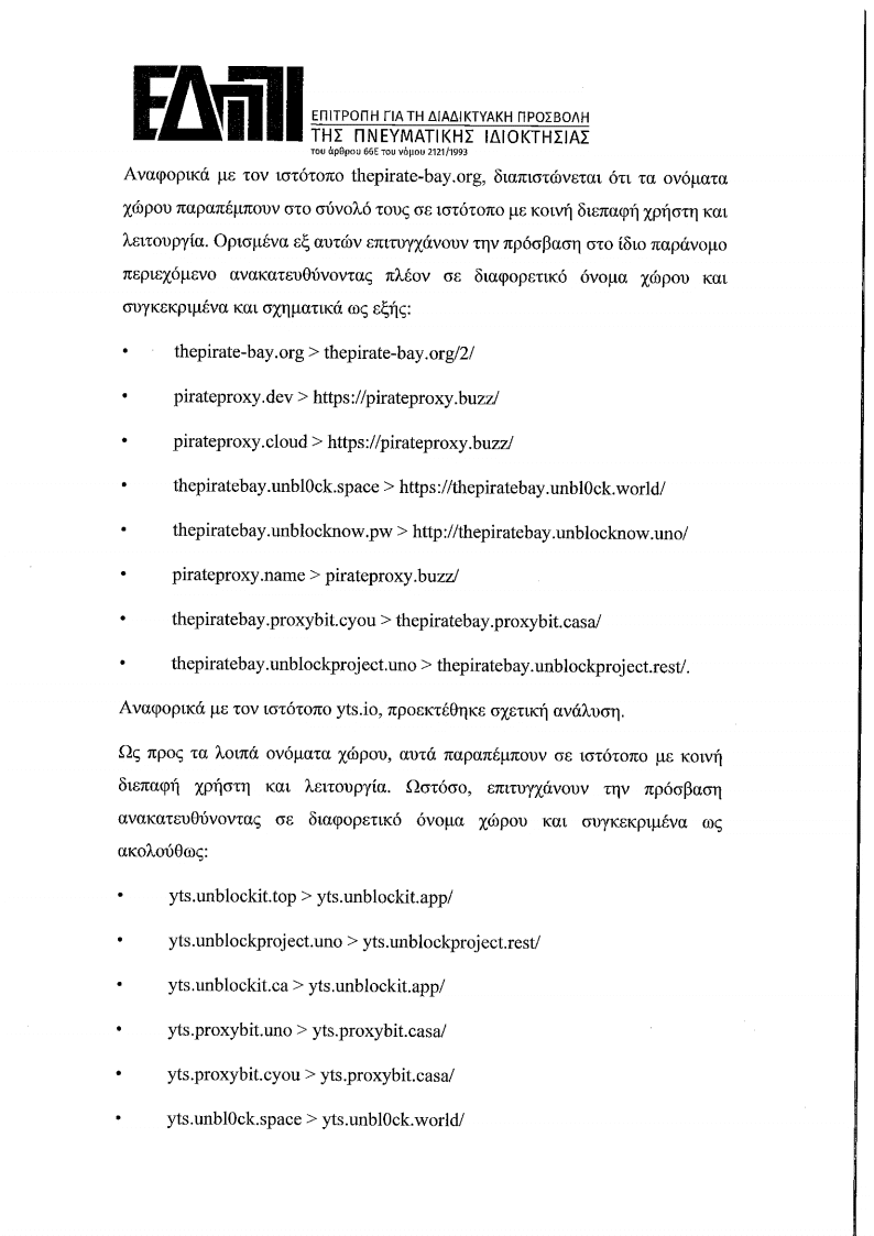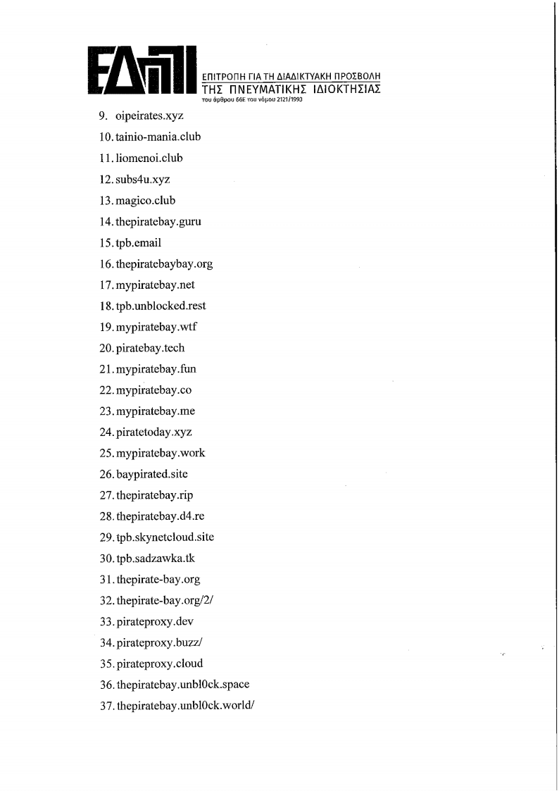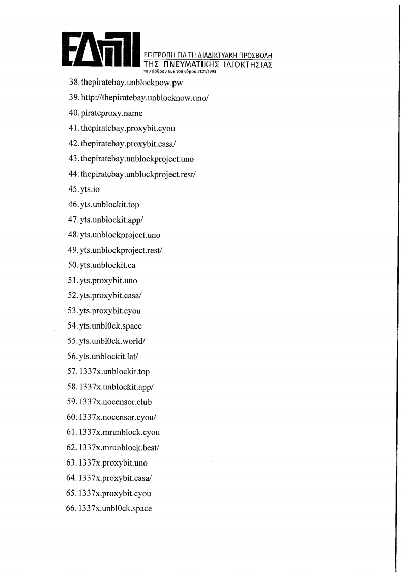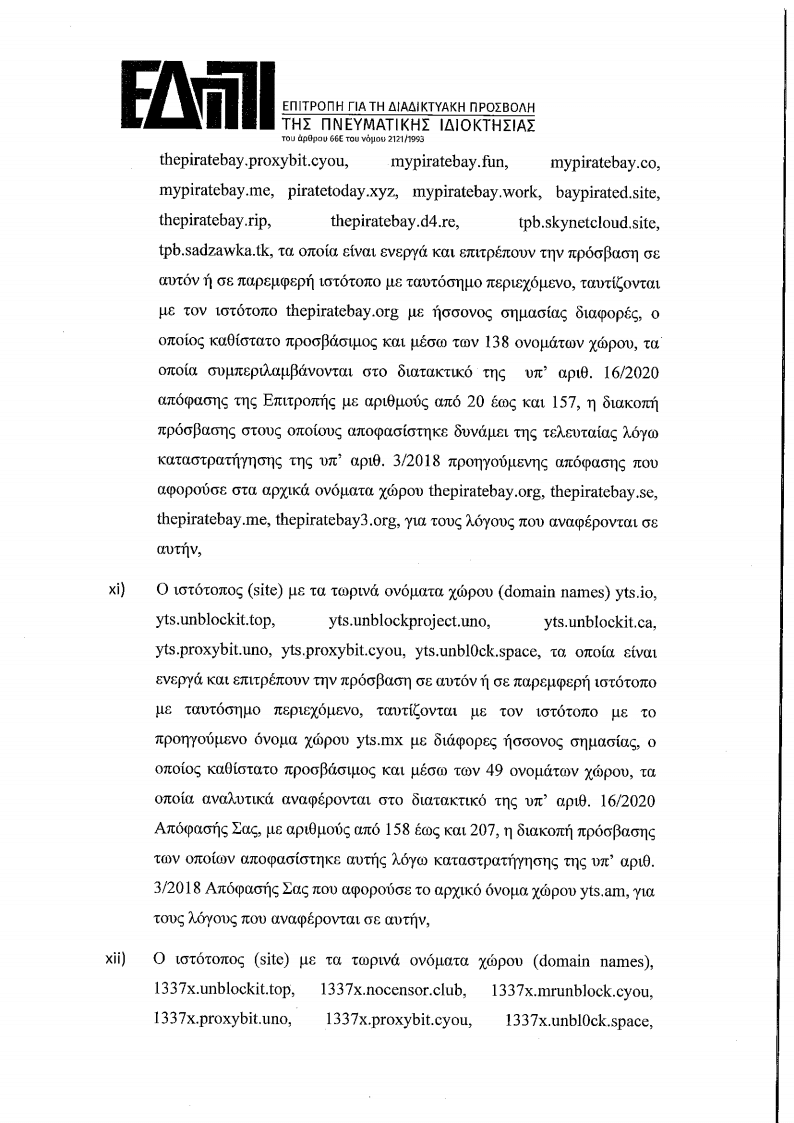 Με λίγα λόγια η απόφαση καταργεί την πρόσβαση σε πάρα πολλά domain names της πειρατικής σκηνής: