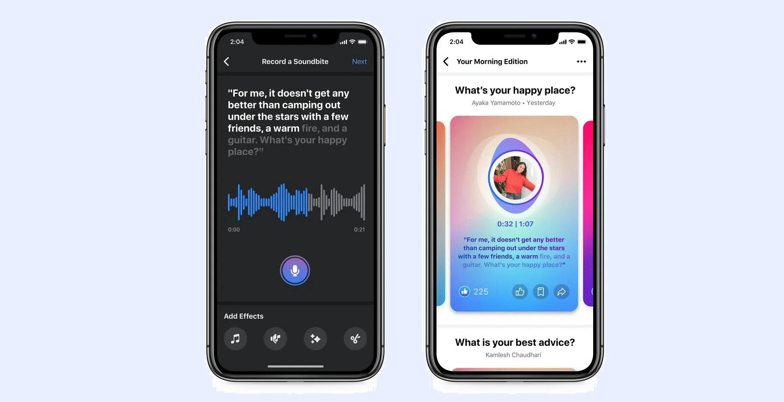 Τα Soundbites θα εμφανίζονται στο ευρύτερο News Feed. Οι χρήστες θα μπορούν να καταγράφουν ήχο με ένα ξεχωριστό εργαλείο μέσα στο Facebook, το οποίο η εταιρεία περιγράφει σαν “στούντιο ήχου στην τσέπη σας”.