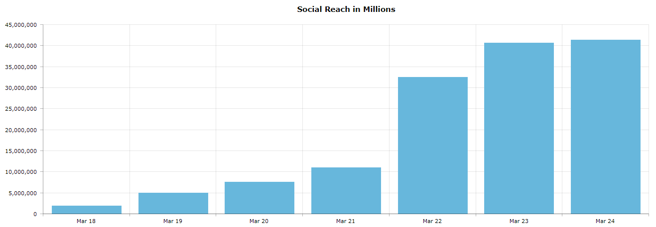 Συνολικά, τα 32 άρθρα συγκέντρωσαν impressions της τάξης των 45 εκατομμυρίων σε παγκόσμιο επίπεδο, μεταξύ της περιόδου από 18 έως και 24 Μαρτίου του 2018. Αξίζει να σημειωθεί και να τονιστεί πως, κατά την χρονολογική στιγμή της δημιουργίας και δημοσιοποίησης της παρούσας έρευνας και ανάλυσης, ο αριθμός αυτός ενδέχεται να έχει αυξηθεί αναλογικά, συμβαδίζοντας με την όποια επέκταση και εκτεταμένη κάλυψη του θέματος από τον χώρο του διεθνή τύπου.