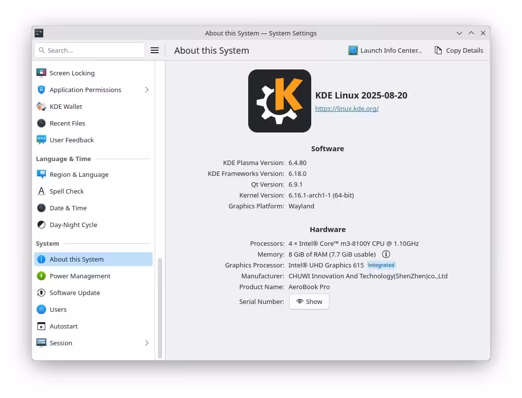 Το KDE Linux είναι ένα αμετάβλητο λειτουργικό σύστημα Linux που λειτουργεί σαν “υλοποίηση αναφοράς” για την επιφάνεια εργασίας KDE Plasma, τις εφαρμογές KDE και τα εργαλεία ανάπτυξης.