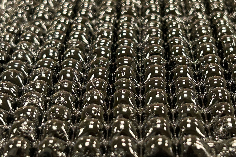 Οι θόλοι της υδρογέλης δίνουν επίσης στο υλικό μεγαλύτερη επιφάνεια, επιτρέποντάς του να συλλέγει περισσότερους ατμούς. Το εξωτερικό γυάλινο πάνελ είναι επικαλυμμένο με μια ειδική πολυμερική μεμβράνη που βοηθά στην ψύξη του γυαλιού, διευκολύνοντας τη συμπύκνωση των ατμών.