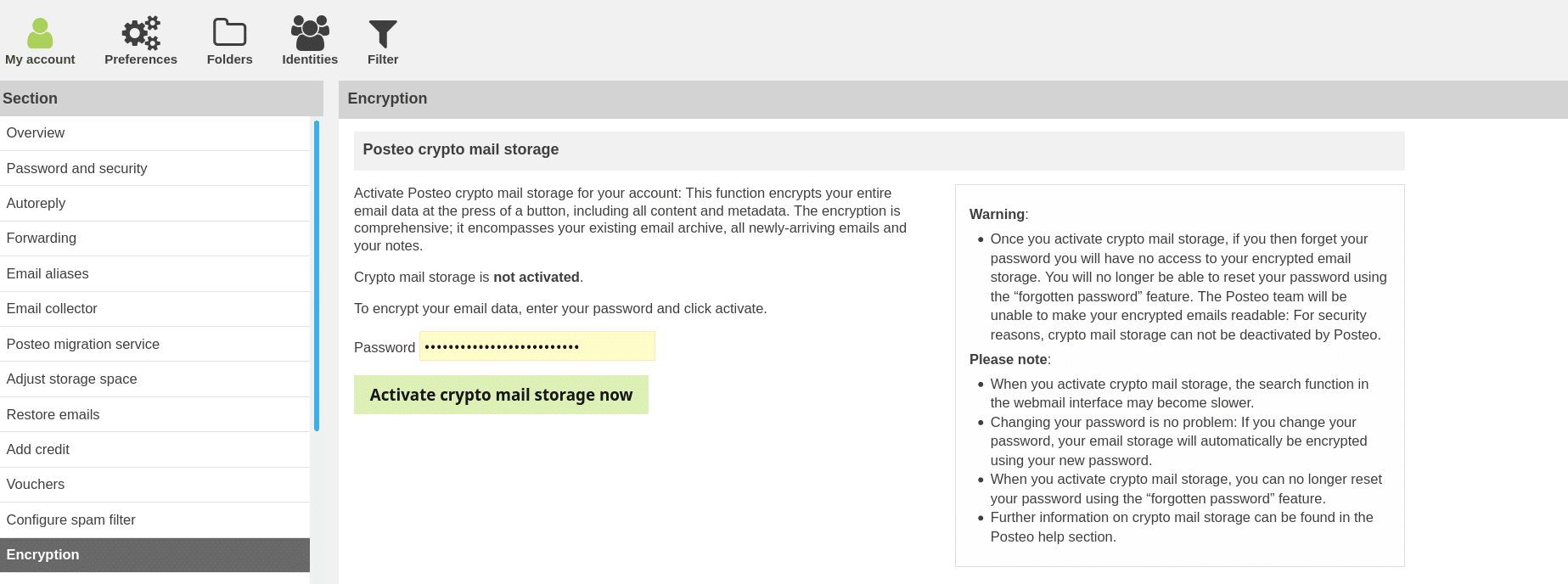 Ωστόσο η Posteo υπόσχεται στους χρήστες μια ιδιωτική εμπειρία ηλεκτρονικού ταχυδρομείου. Στην πραγματικότητα, το απόρρητο είναι το μοναδικό σημείο πώλησης της εταιρείας. Η εταιρεία δεν “διαβάζει” τα metadata στα μηνύματα ηλεκτρονικού ταχυδρομείου και δεν συλλέγει τις επαφές χρηστών για την προβολή διαφημίσεων.