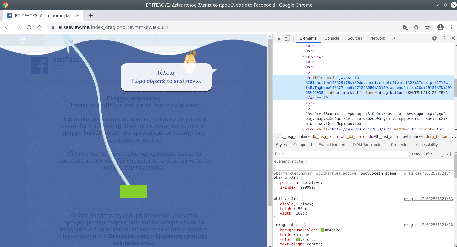 Το domain seeview.me δεν κάνει ping αλλά το el.seeview.me λειτουργεί κανονικά, κάτι που σημαίνει ότι η κακόβουλη καμπάνια στο συγκεκριμένο subdomain φτιάχτηκε ειδικά για Έλληνες.