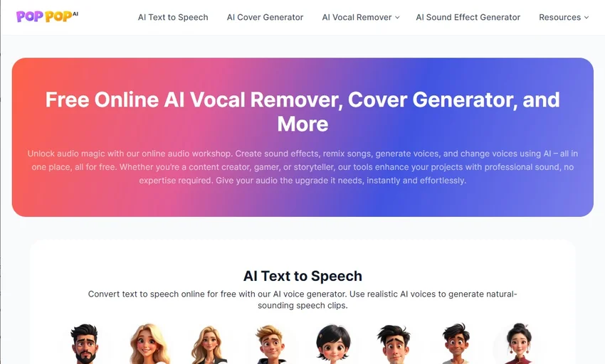 Το PopPop AI είναι μία σουίτα με εργαλεία τεχνητής νοημοσύνης που προσανατολίζονται στον ήχο. Διαθέτει διαχωρισμό φωνής από την μουσική, δημιουργία ηχητικού μηνύματος βάση κειμένου, διασκευές τραγουδιών, ηχητικά εφέ και άλλα.