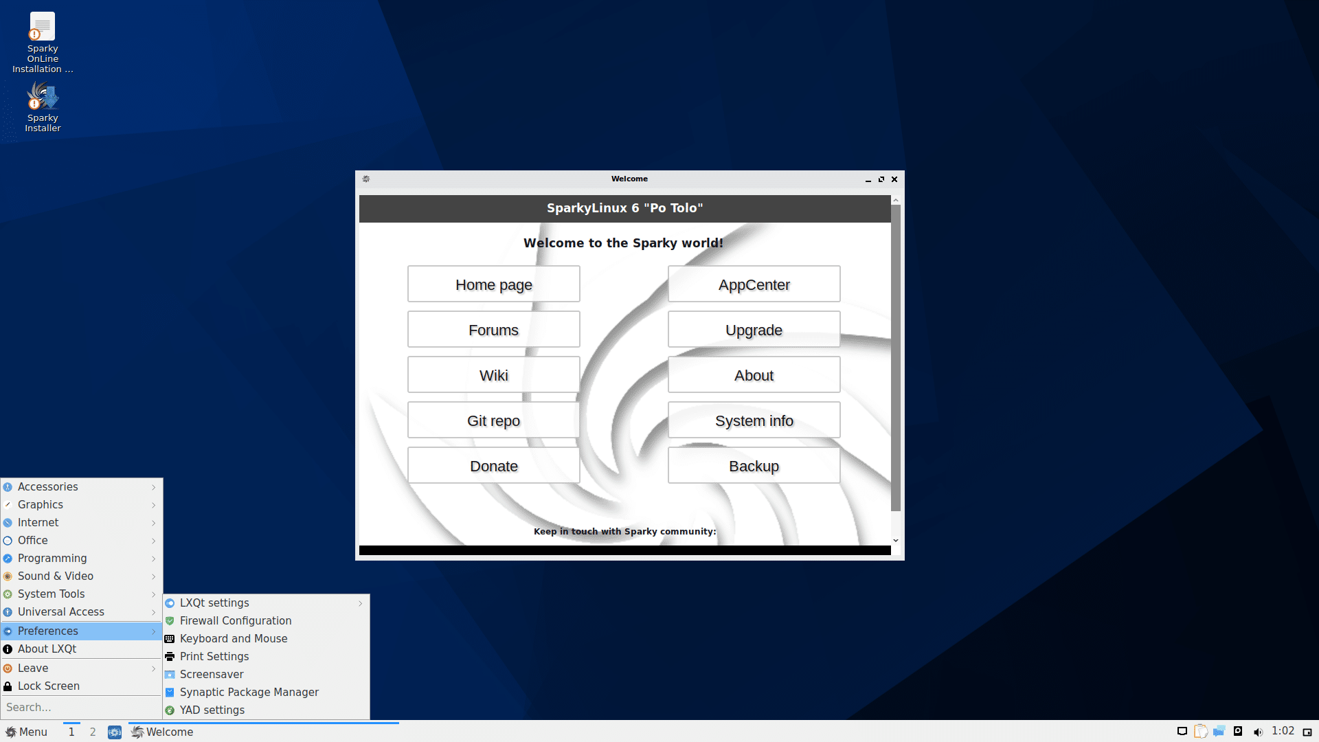 - sparkylinux-6.0-x86_64-lxqt.iso (1,542MB, SHA512, signature, torrent),