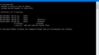 Τρέξτε εντολές του Command Prompt από μια συντόμευση των Windows