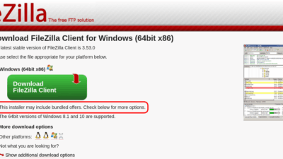 FileZilla προσοχή στην πρώτη σελίδα λήψης