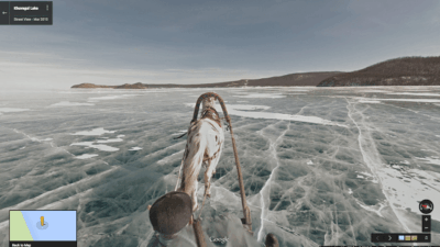 Google Street View βόλτα σε παγωμένη λίμνη με γιγαντιαία γλυπτά πάγου