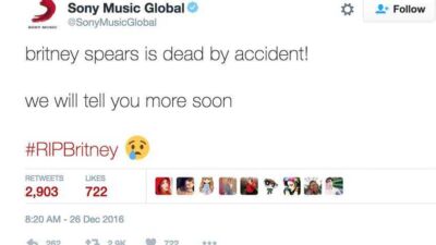 Hacked η Sony Music, μετέδωσε ψευδώς τον θάνατο της Britney Spears