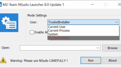 NSudo 8.0.1 τρέξτε διεργασίες σαν TrustedInstaller ή System