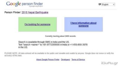 Google Person Finder για τον σεισμό του Νεπάλ