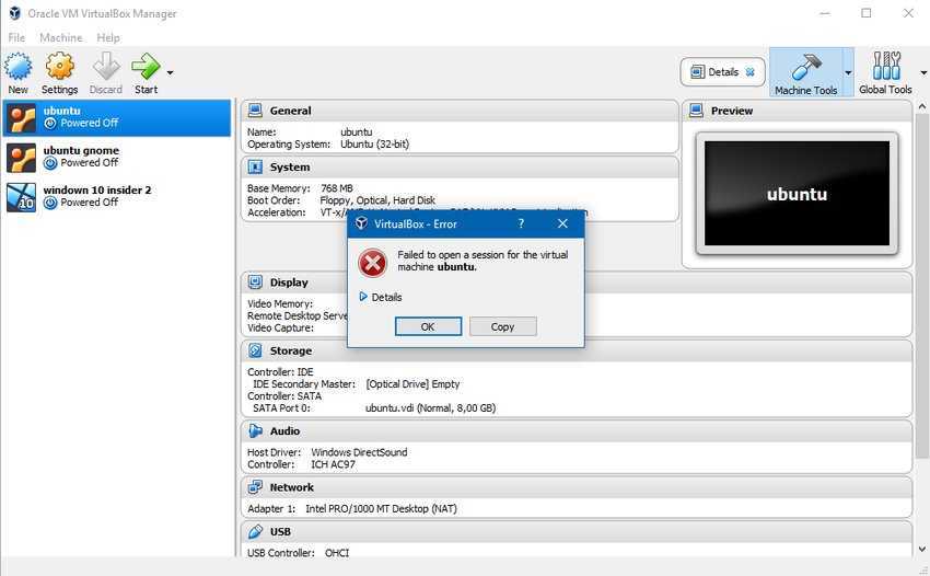 Έτσι προχωρήσαμε στην αφαίρεσή του και μετά το πέρας του update των Windows 10 εγκαταστήσαμε την τελευταία έκδοση του VirtualBox, την 5.2.18-124319 σε περιβάλλον 32bit. Η εφαρμογή άνοιξε μία χαρά, όλα έδειχνα τέλεια, πλην όμως αρνήθηκε να τρέξει οποιαδήποτε virtual machine, είτε παλιά είτε μία καινούργια που μόλις δημιουργήσαμε.