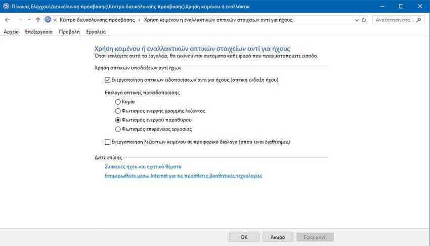 Υπάρχουν τρεις τρόποι να ρυθμίσετε το Visual Alerts, Μέσω των Ρυθμίσεων, μέσω του Πίνακα Ελέγχου ή μέσω του μητρώου. Ας δούμε αυτές τις μεθόδους