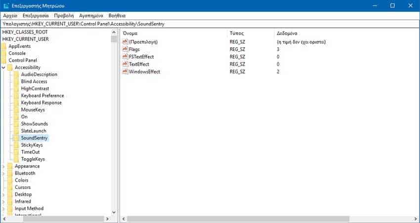 HKEY_CURRENT_USER\Control Panel\Accessibility\SoundSentry