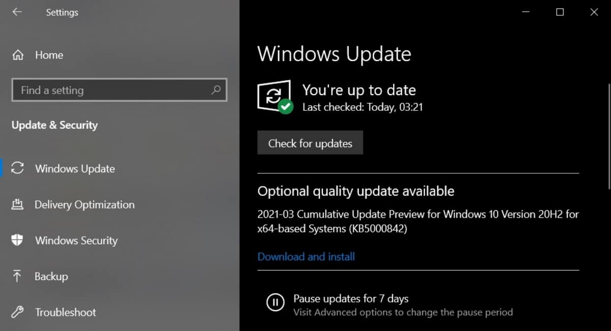 2021-03 Cumulative Update Preview for Windows 10 Version 20H2 for x64-based Systems (KB5000842)